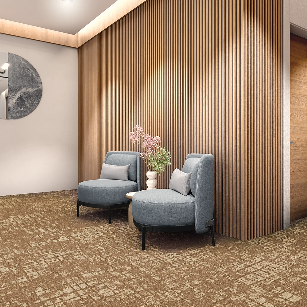 Like the traveller whose eyes rest upon the exciting shimmer of city lights in the distance, this carpet lets you know you have arrived! Inspired by the cosmopolitan energy, fast-pace and stamina of urban life, it offers a vibrant colour palette, a pattern designed for obscuring heavy foot traffic, and enhanced durability using our Stainproof SDX fibres. From hotel suite to office, this heavy tufted broadloom offers in-vogue sophistication that is sure to be as memorable as any of the world's greatest cities